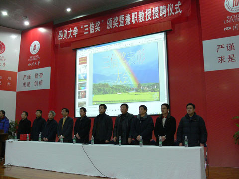 2. Our mission is to services our alumni,build the communication platform between the alumni and their alma mater. Through holding various forms of activities, on one hand, alma mater can timely transmit its achievements and development to the alumni so as to  provide resources for them; on the other hand, alumni have the opportunity to repay their alma mater. In response to this mission,the alumni in our college set up “Sichuan University Sanxin Scholarship”, “Sichuan University Yubochuang Scholarship” , “Sichuan University Jiuzhou Group Scholarship”. These measures greatly encourage the college students in the school to work hard.