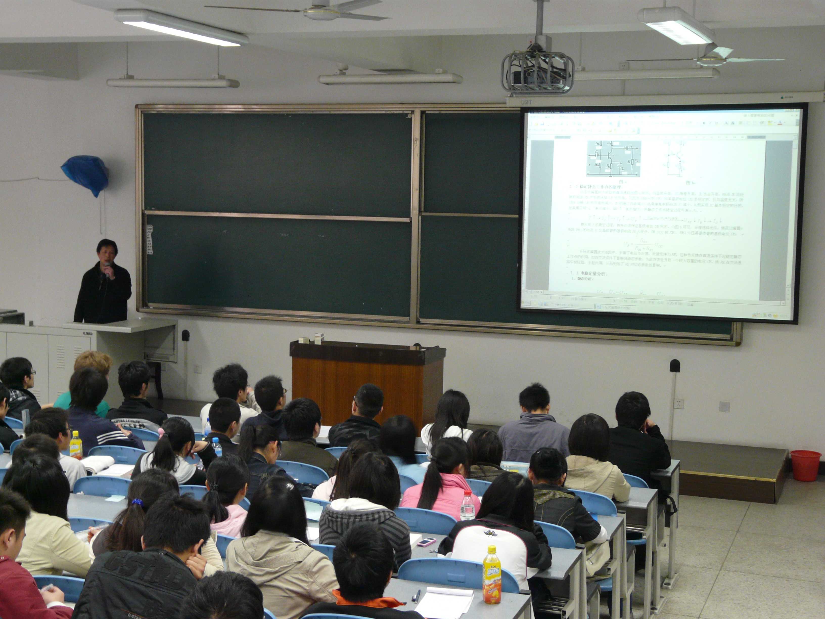On May 8, 2009, Teacher Wang Zhiguo held a lecture which is one of the series of the Electronic Engineering lecture about cobase amplifying circuit for the students of electronic technology union.