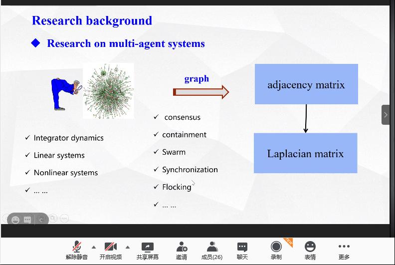 做主题为“饱和多智能体系统协同控制问题研究”的学术讲座。活动旨在拓展研究生的学术视野,为研究生学术交流提供平台。